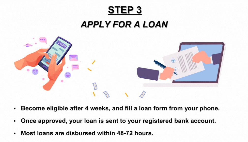 Get a loan in just 4 weeks by showing your repayment ability through structured contributions.